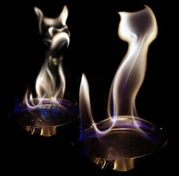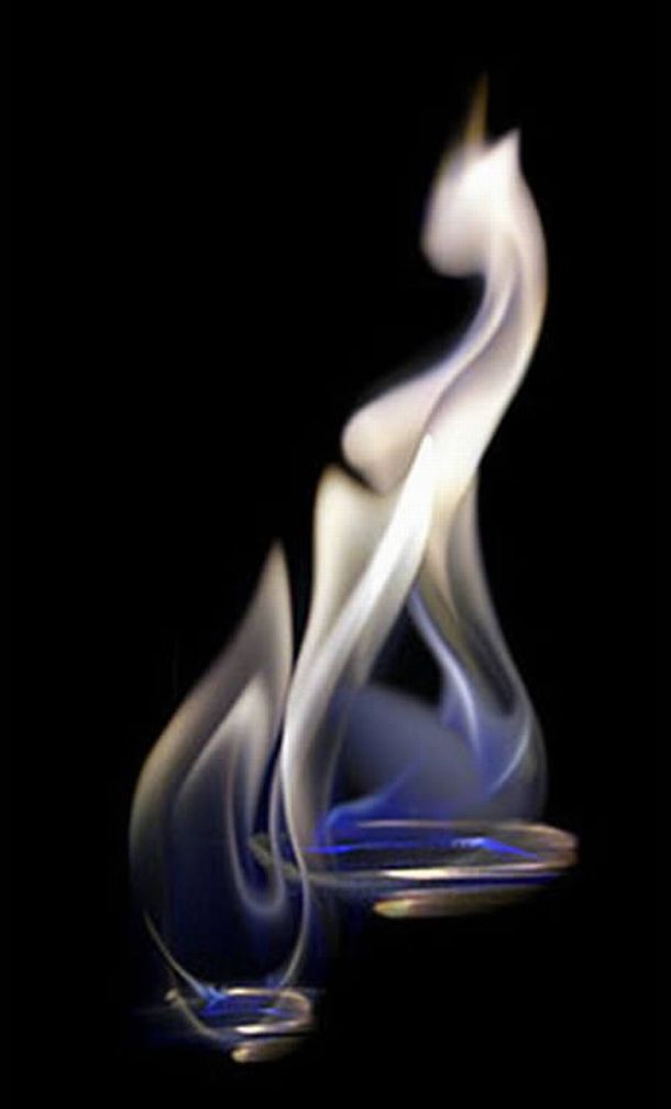 Art is an expression of feeling and this is what an anonymous artist has tried to do by virtue of fire flames. He has very ingeniously molded photographs of caustic flames with the help of a slight graphics editing program to give them beautiful shapes matching to either a human being or an animal. Have a look at the bunch of images pinned below to see how the artistic has depicted his love for all creatures of God.