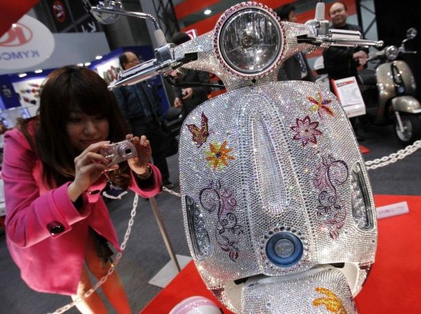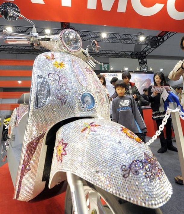 You might not have heard about The Tokyo Motorcycle show, but it’s the place where you can see some surprising models from all the big motorcycle manufactures like Yamaha, Suzuki, and Honda etc. and that’s where this customized Kymco scooter “Mitch,” which is studded with 100,000 Swarovski crystals, was on showcase. The 37th Tokyo Motorcycle Show at Tokyo Big Sight had started on 26th of March and ended on 28th and featured some 136 exhibitors.