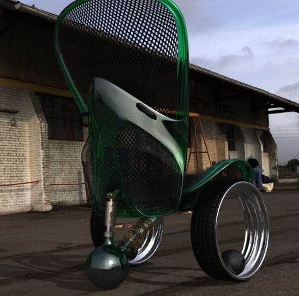 Designer Thomas Ross & Dave Cochrane’s ‘Futuristic Wheel Chair’ concept is indented to create mobility system using best of current technology available to improve the quality of life for individuals who are unable to walk (either at all or without assistance) but who had viable and varied use of their upper body. The concept was designed after considering some specific problems. First of all, wheelchair users often rely on slinging a backpack or similar over the back of their chair. Therefore, a more elegant cargo solution for a personal mobility system, a teardrop extrusion on the back of the product, was incorporated. Secondly, issue of pressure sores was a major aspect for the designers and therefore they opted to simulate the inclusion of Herman Miller’s superb Aeron chair fabric, Pellicle. This mixed technology fabric spreads bodyweight extremely evenly and should, in theory, allow more comfortable long term use without negative impact to the user’s circulation and skin health.
