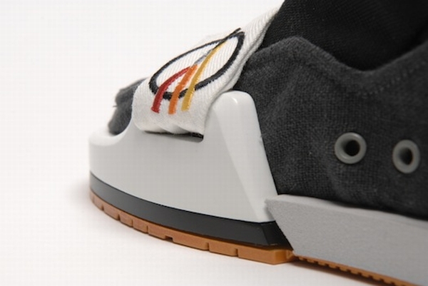 Tom Sykes designed these sneakers to get over the problem of childhood obesity in children by inculcating a fun way to encourage exercise and body fitness through such rigorous activities as dancing. Taking the sneakers as fit for inner city youth urban dancing is the theme with these shoes.