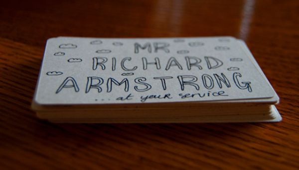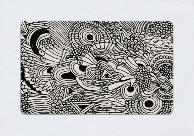 Rich Armstrong has finely illustrated with a fineliner about 21 custom made recycled cards each weighing 300g. Some of these drawings (both vertical and horizontal) are an outcome of Rich’s own brain, while few a result of time and what people spoke about to him. Rich in explanation of his selection of the unique canvas says, the cards are a small little way for him to draw, be more personal and express his style to make the world a friendlier place.