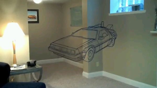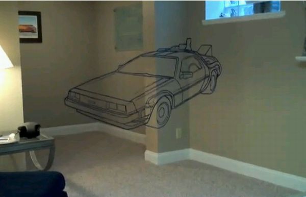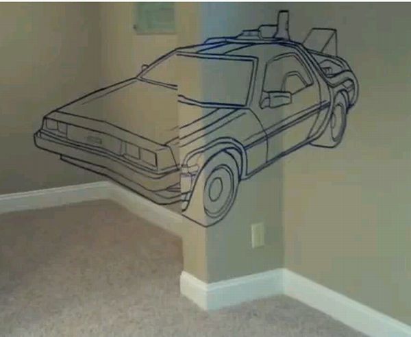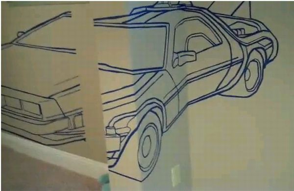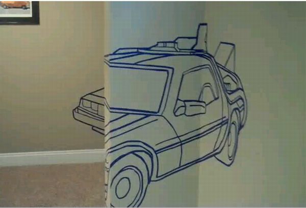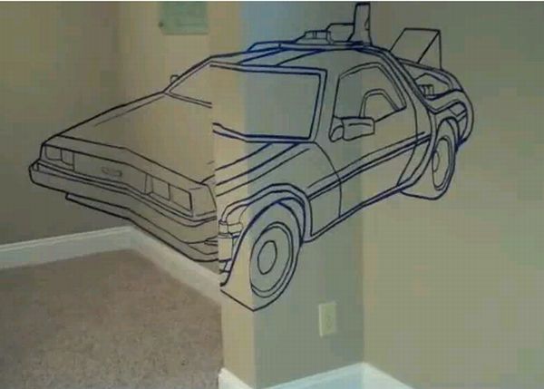 The creator of this illusion calls it an anamorphic, time traveling DeLorean, which he made in his basement. This optical ‘Wall Illusion’ was made with the help of a painter’s tape and elbow grease. Have a look at the pictures below and you will surely appreciate the work.