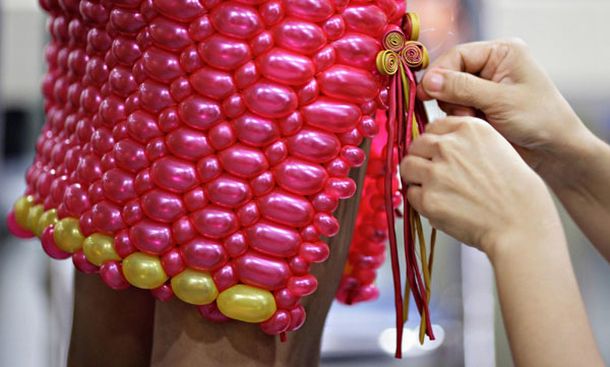 Balloons are best for a kitty party celebration or a birthday bash, but balloons for a dress? Well even I’m still trying to digest! These shouldn’t come as a surprise though, we’ve seen dresses made of condoms come out of extra-creative China. These wearable balloon Cheongsams (traditional dress for Chinese women) by People’s Association Balloon Sculpturing Interest Group, does seem like the next fashion statement making way from the East. The balloon cheongsams are made in collaboration with the National Museum of Singapore’s “In The Mood for Cheongsam” where it is displayed by sexy models on their attractive bodies. Sadly, we don’t have any other detail on these cheongsams but we definitely have images of how these look. Jump down for a visual treat.